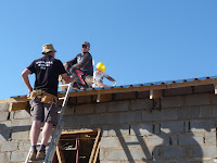 The house was standing, but the corrugated zinc had to be fixed to the roof and that was unfortunately…….a task for the men. They had to knock in a hundred nails each just to complete half of the roof. The boys were doing odd jobs such as filling the drain on the sides, finishing off the last row of the drain, assembling the bolts and washers and passing on zinc plates.