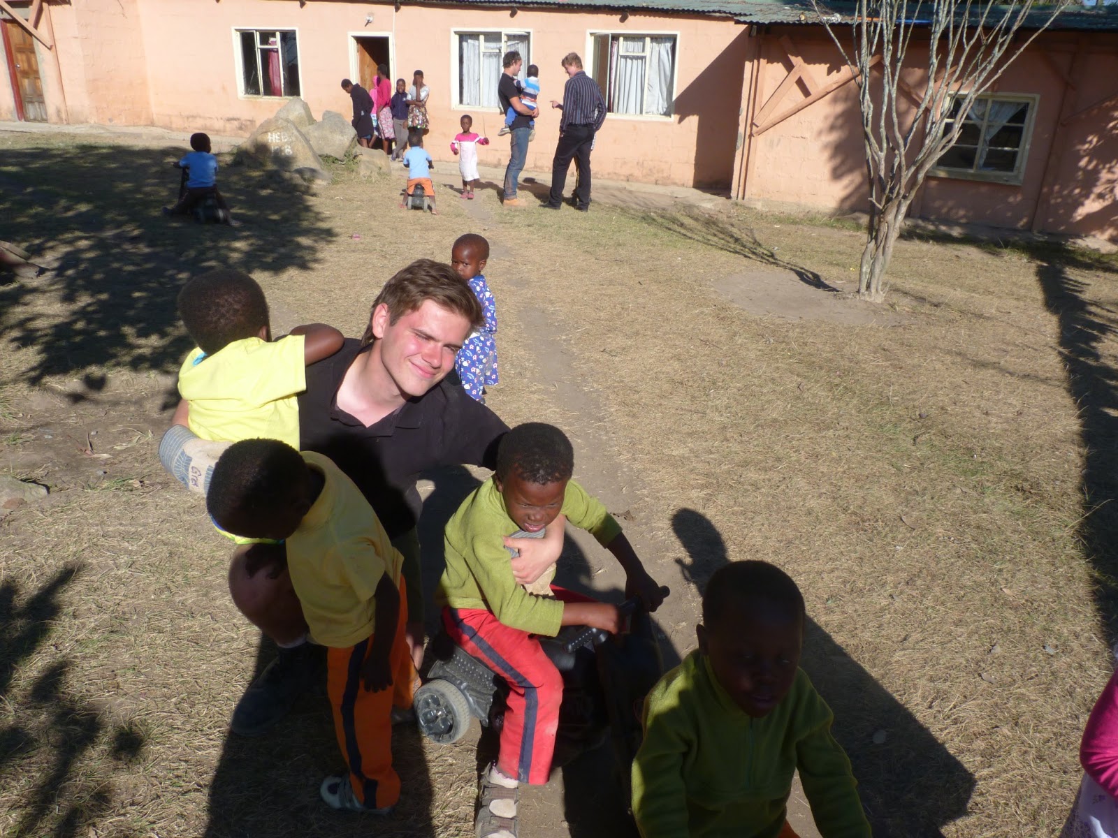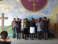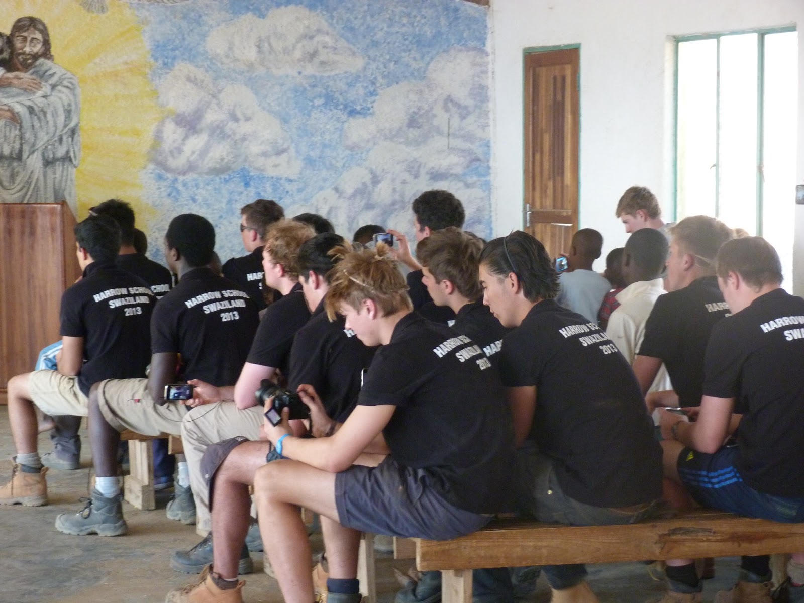 At 1pm the ladies from the orphanage brought us lunch which was delicious! It was cooked in a black pot and consisted of chicken, rice and crushed corn and beans. The carrot salad rounded of the very filling meal after which the boys were summoned to the church. Here the senior children entertained us with lovely songs and the Harrow boys had a chance to repay them with a version of “Forty years on". The young man in the picture, could not walk and doctors believed that he would never walk in his life. He, however, recovered fully, without surgery, and is one of the top five students in his school.