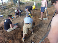 More trench digging was needed and this time it was aimed at connecting the trench to the drain. The boys involved came across massive rocks and had to remove this before proceeding.