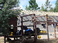 The drain was built by 4 pm and the three boys dedicated to this heavy duty task had a welcomed break. Cement, mortar and concrete mixing all carried on as the six days preceded today. Boys and workmen tackled the plastering of the inside walls and finished one room completely.