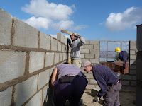 By 3 pm the bricks arrived and the boys all had to unload the truck and then started to build the last two rows of the house. Cookies and cold drinks became a matter of urgency at 4 pm and then the last shift started.