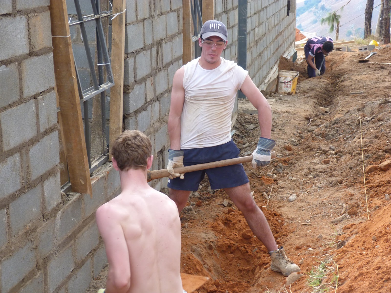 Mr van Noordwyk led Harry, Angus, George, Brian, Gregory and Louis who were digging trenches and Kushal was delivering water. Alexis collected bricks for everybody and filled up the gaps between the bricks.