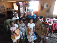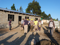 The zinc was finally all fixed to the roof at 3 pm and the boys had plenty of time to play with the children. Ali had a chance to hand out the toddlers’ bags and they were awarded with sweets from Andrew before taking back the bags, to be kept safely for the new house.