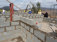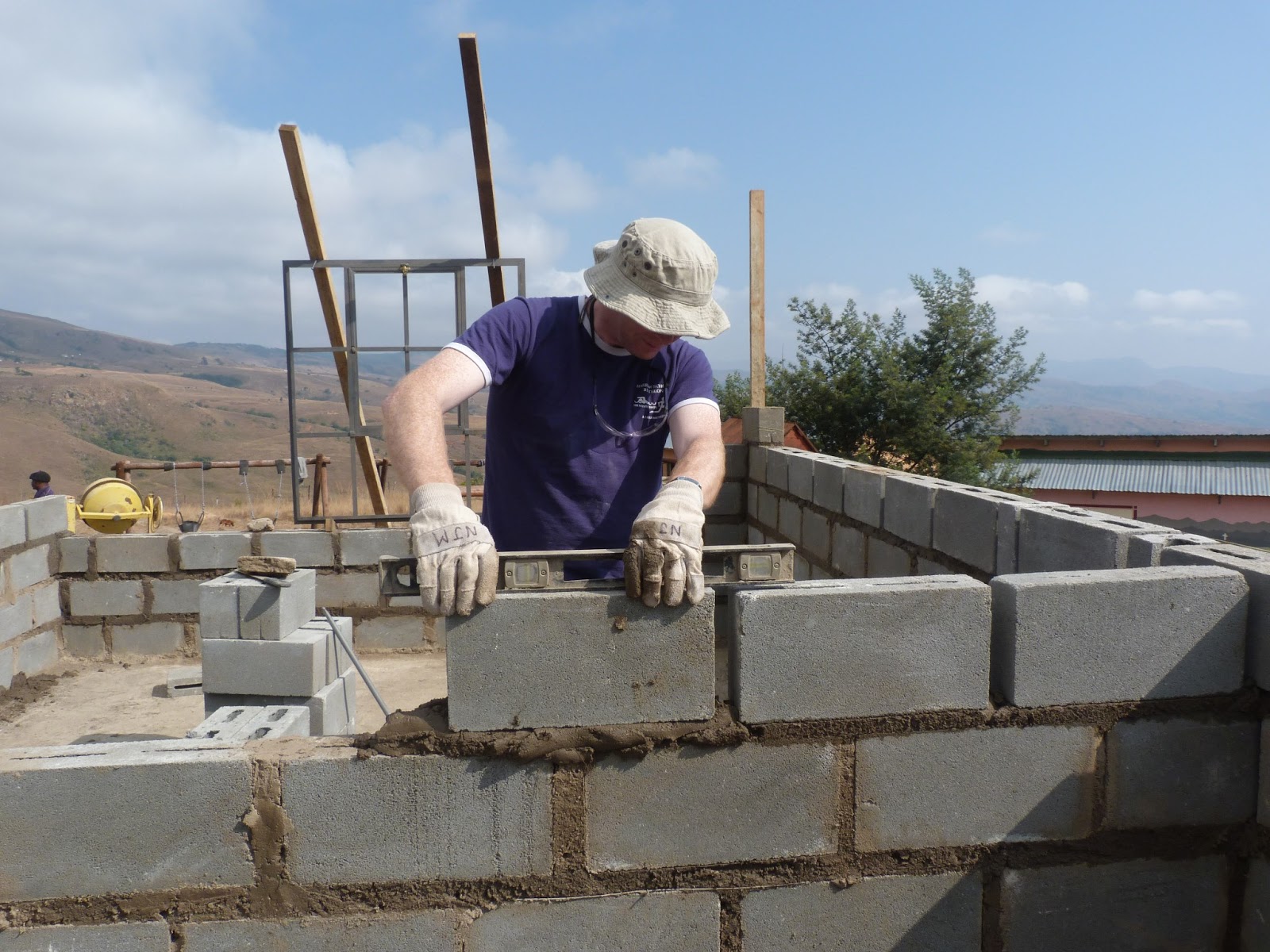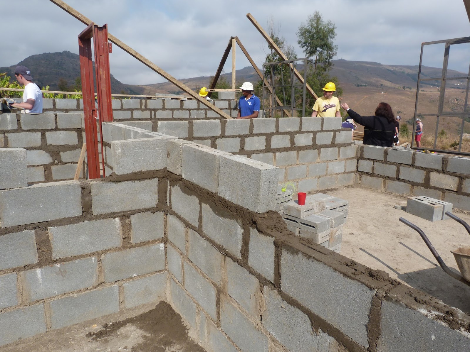 Some boys mixed concrete; others dug a massive hole for the drain or built trusses for the roof. The majority, however, started building the walls of the house of which the foundations floor and first line of bricks were built before our arrival.